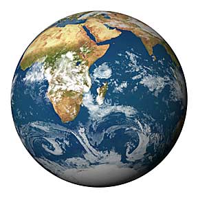 CLOUDY The Earth in its natural, cloudy, state. Cloud cover is derived from NOAA weather satellite images. Click either image below to view full size. |