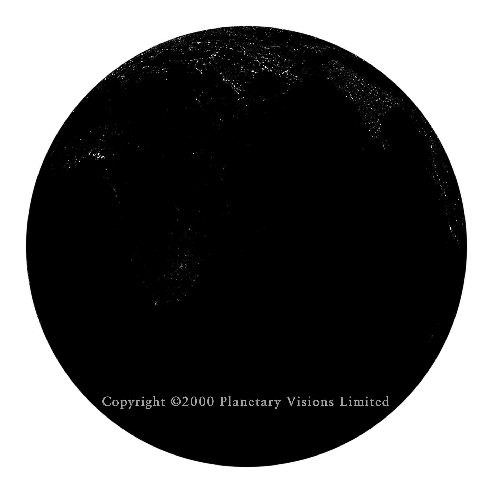 NIGHT-TIME* The Earth at night without clouds, based on images from the US Air Force DMSP weather satellite. Click either image above to view full size.