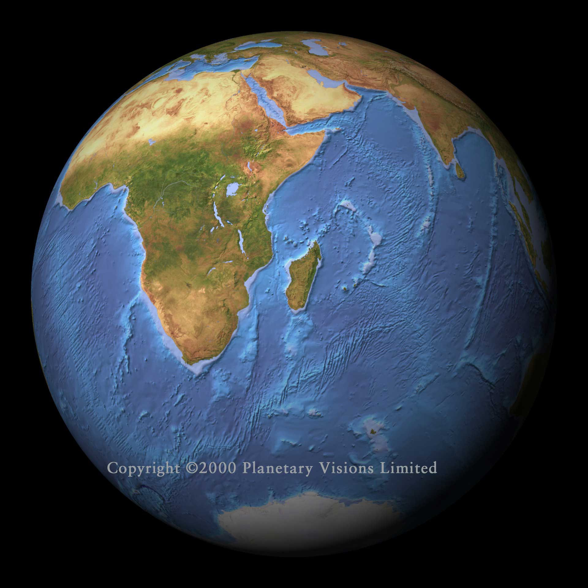 OCEAN DEPTH A natural land suface combined with a colour-coded ocean depth map. Click either image above to view full size. |